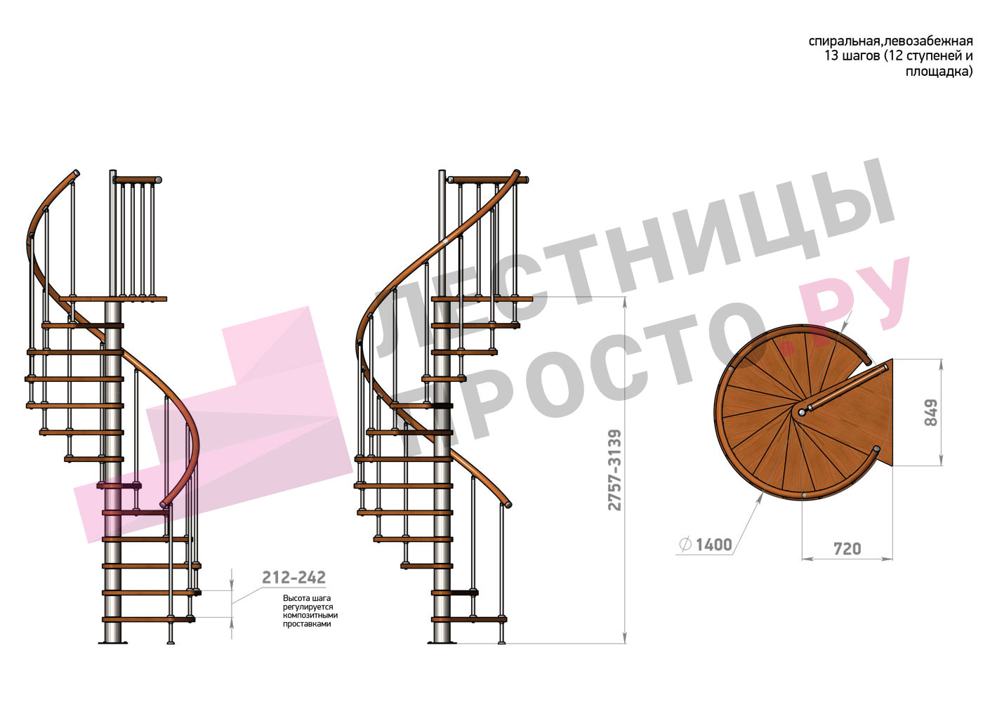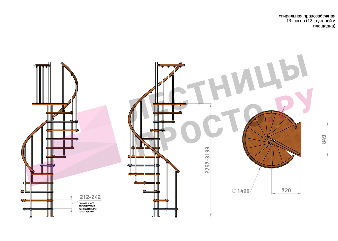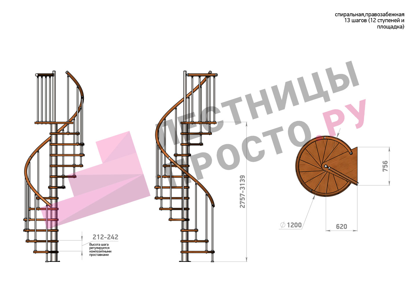 Винтовая лестница Prosto Spiral White/Высота 2545 - 2898 мм