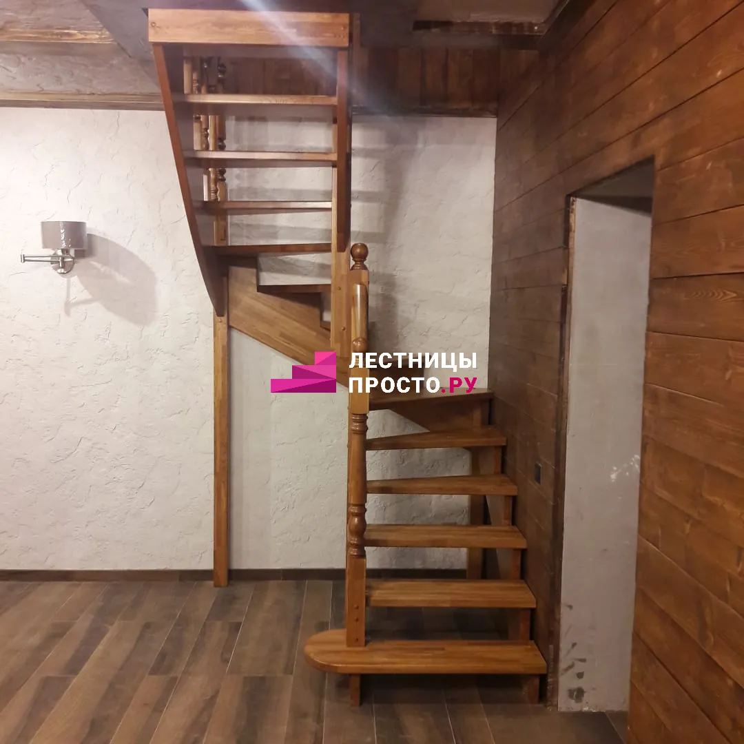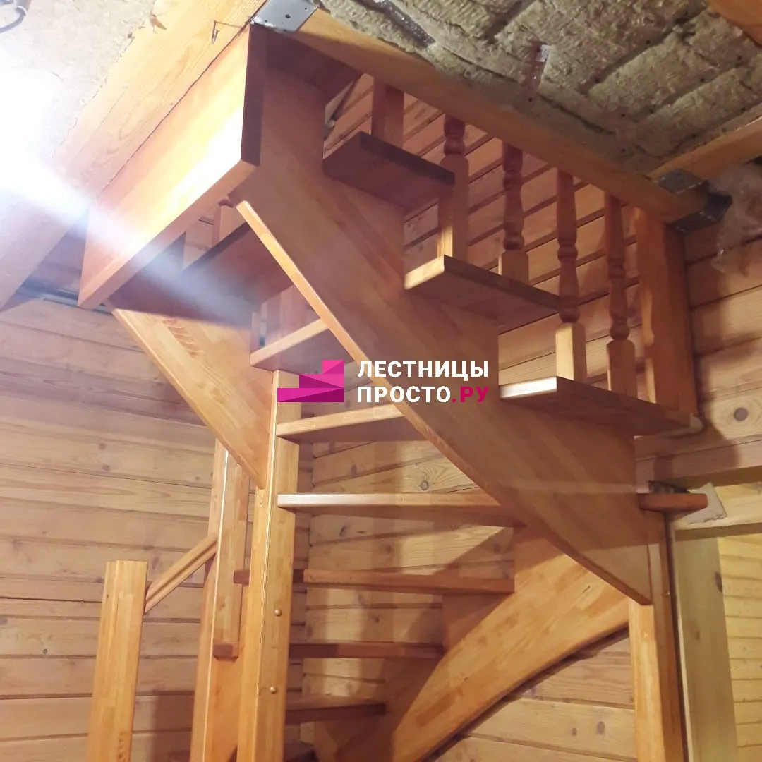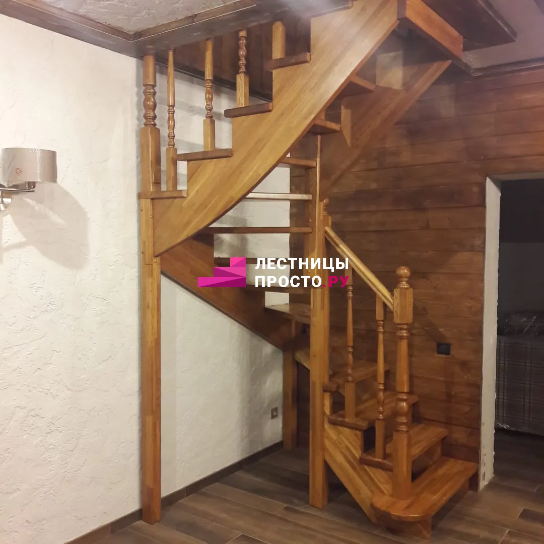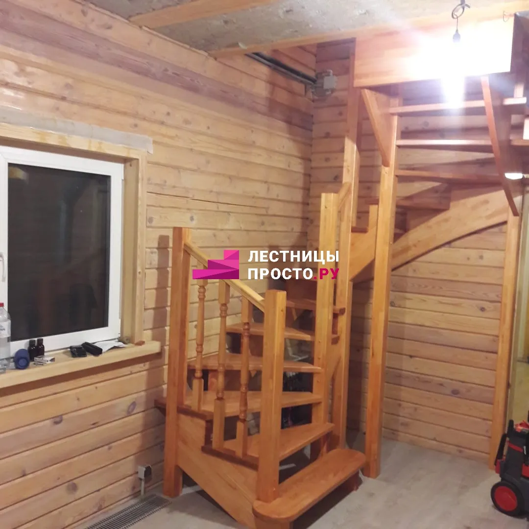Лестница LP из сосны на второй этаж с поворотом на 180 градусов