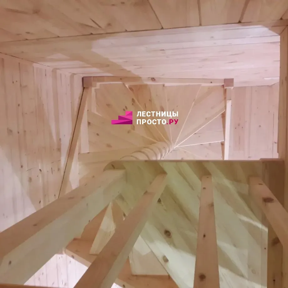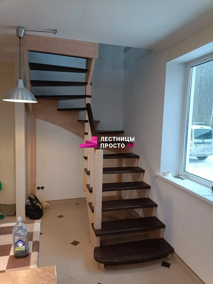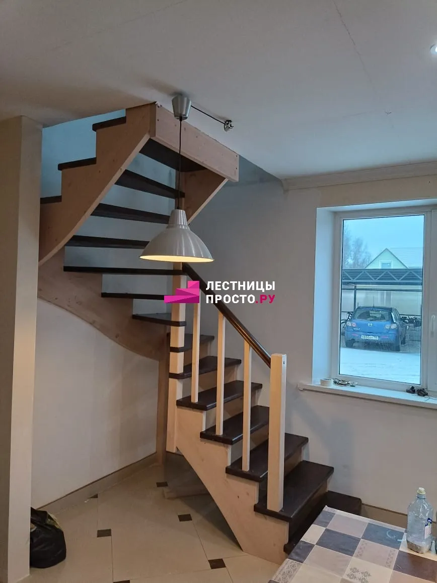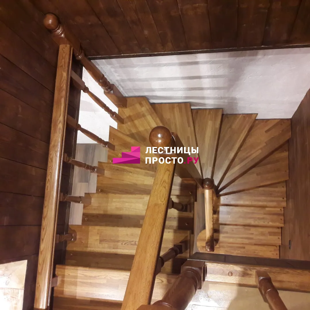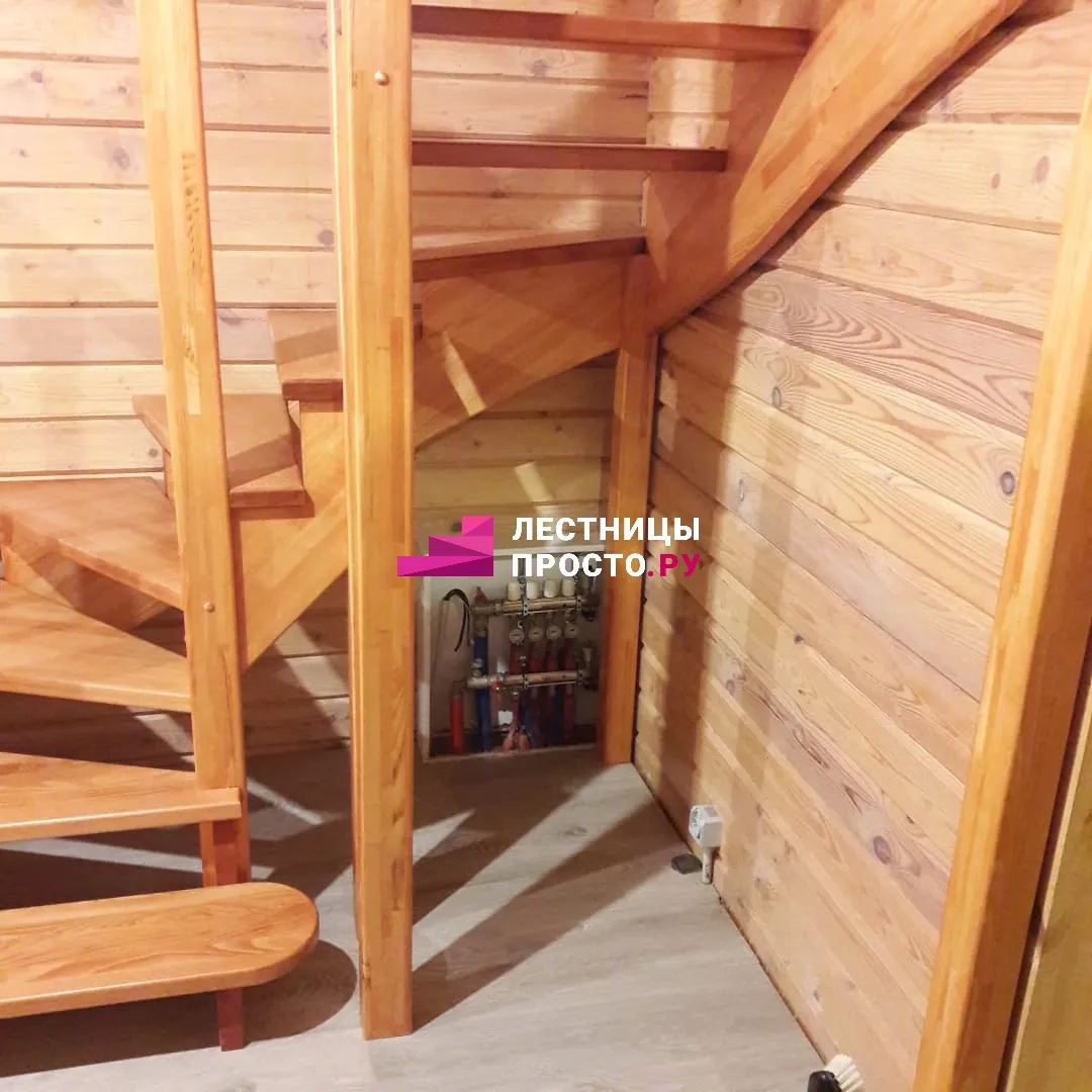 Лестница LP из сосны на второй этаж с поворотом на 180 градусов