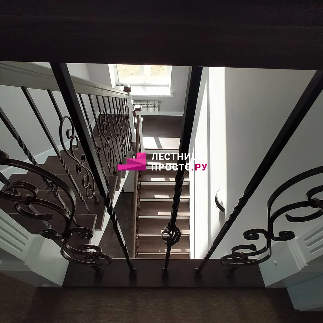 Ограждение Кованые стойки, перила - лиственница